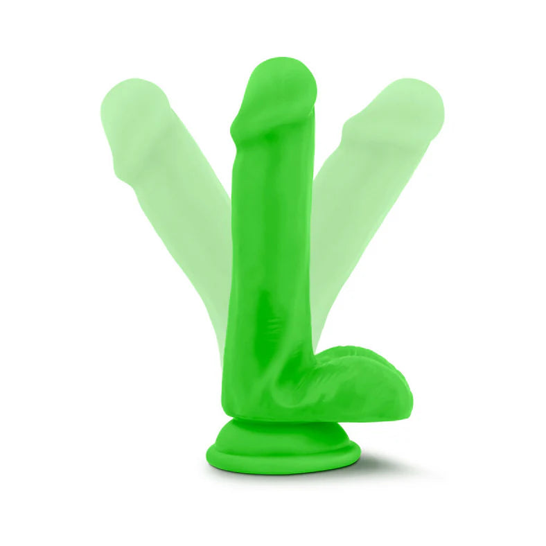 Blush Neo 6 in. Dual Density Dildo with Balls & Suction Cup Neon Green